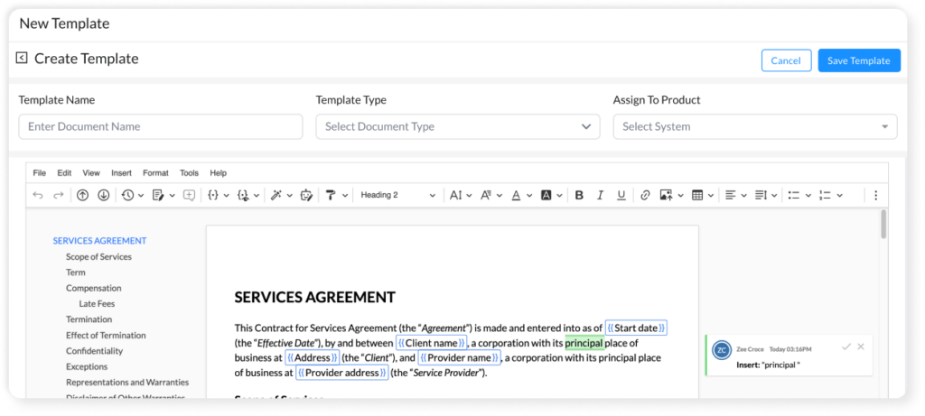Build once, reuse forever — create rich templates with placeholders ({{shipment_id}}, {{customer_name}}) so documents are consistent and fast.